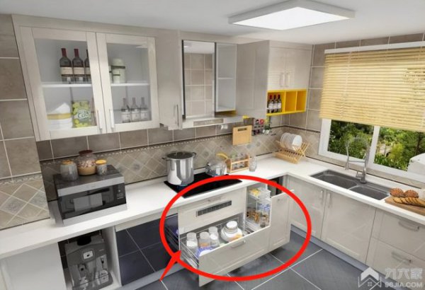 橱柜和浴室柜建议多做抽屉,一般厨卫里的东西都比较细小、杂乱,如果用柜子收纳根本放不了几个,而且还很乱,找的时候根本找不到。抽屉能很好地有条理的收纳,打开一目了然。