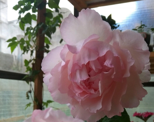 佩尔朱克,是比较仙的一款月季,开初开浅绿色花瓣包围着粉色花心,慢慢的随着温度,颜色会渐渐加深。